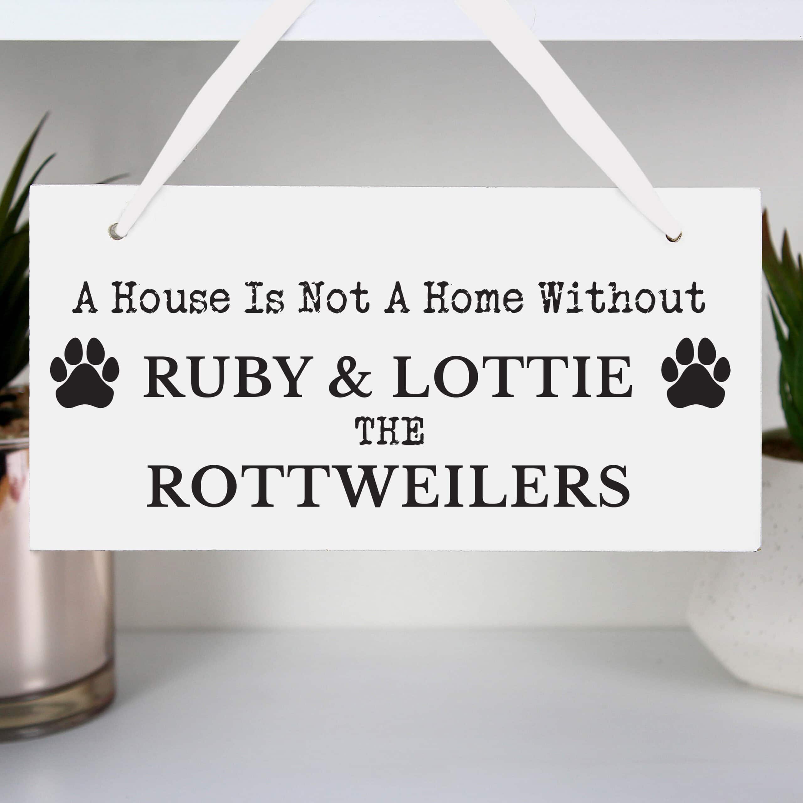 The fixed text — 'A house is not a home without' — followed by their breed says everything, really. Hang it in the hallway, by the back door, or wherever their lead used to hang. A simple, affordable tribute that reminds you every time you walk past it.